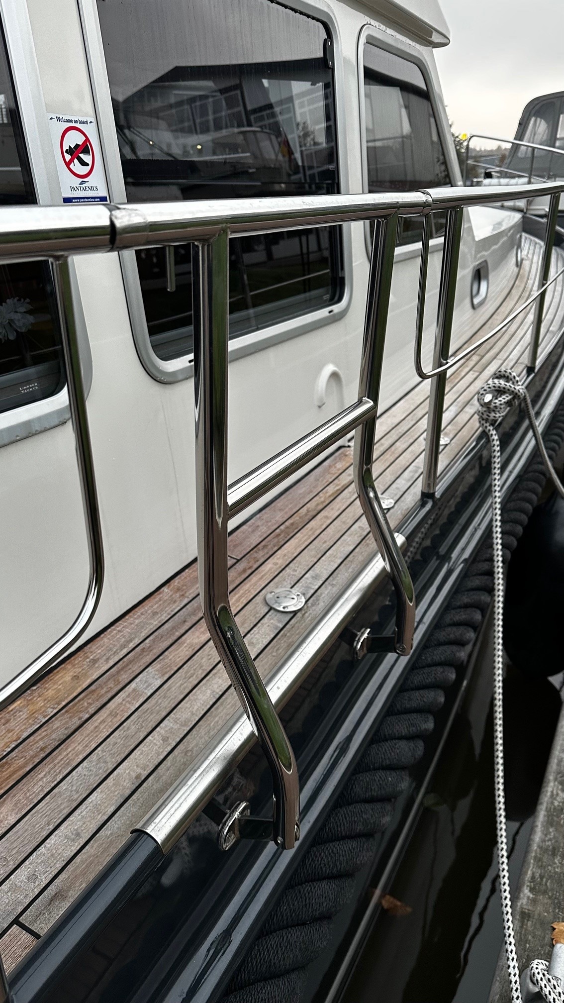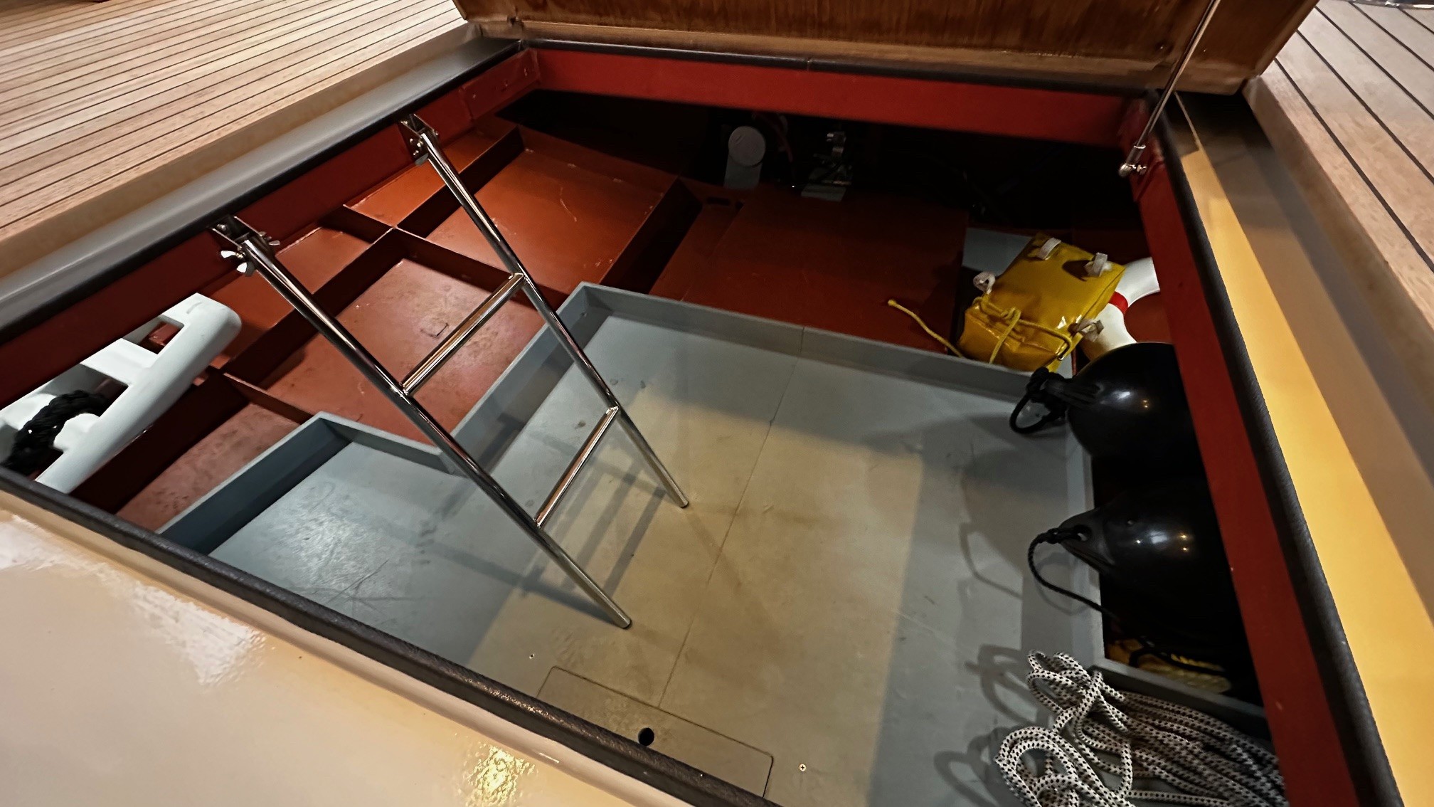Polished stainless steel side ladder, hinged and integrated into the railing (BB and SB)