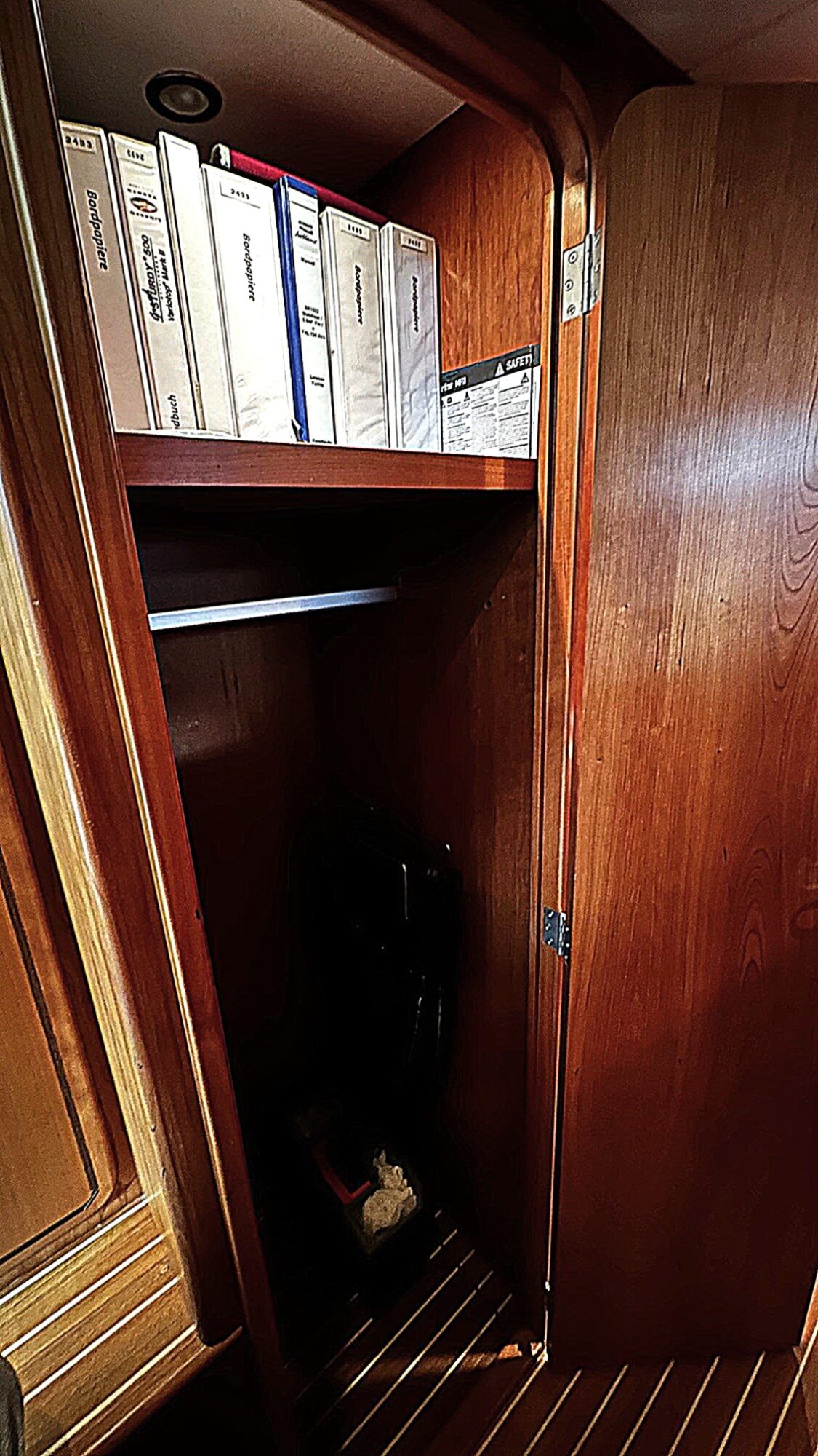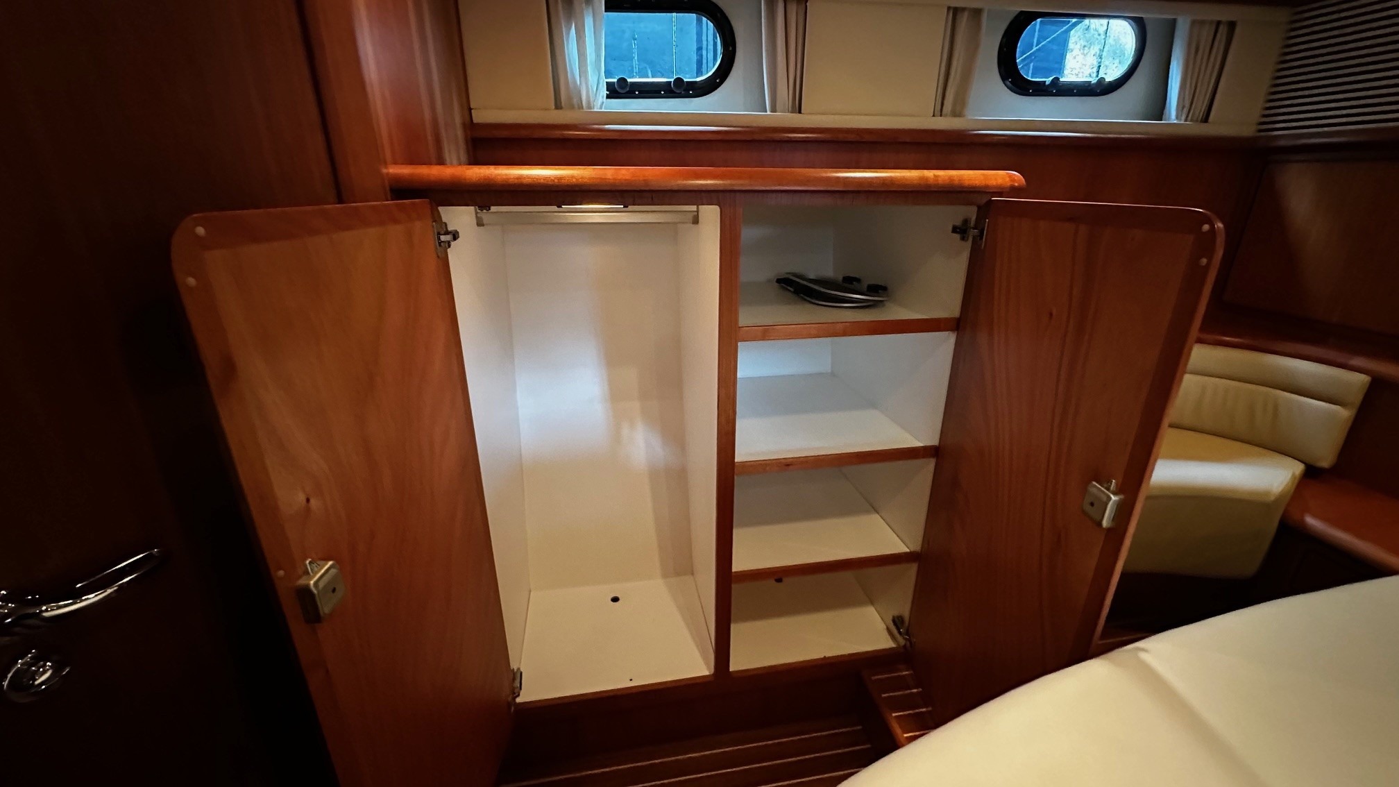DIVISIONAft cabinwith double bed, separate toilet and shower. Two seats on each side, large lockers on both sides.