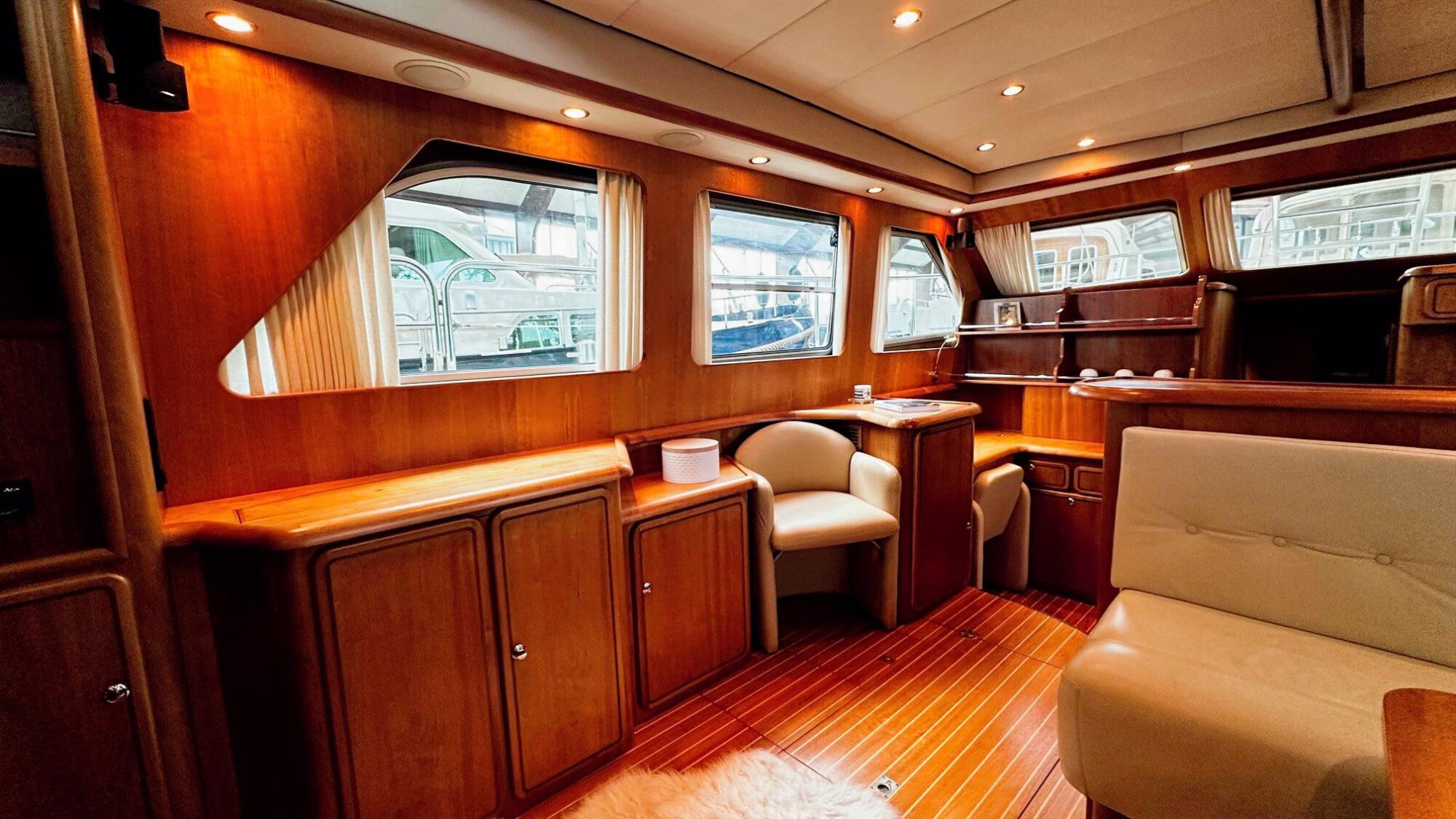 Original teak ship flooring throughout the ship