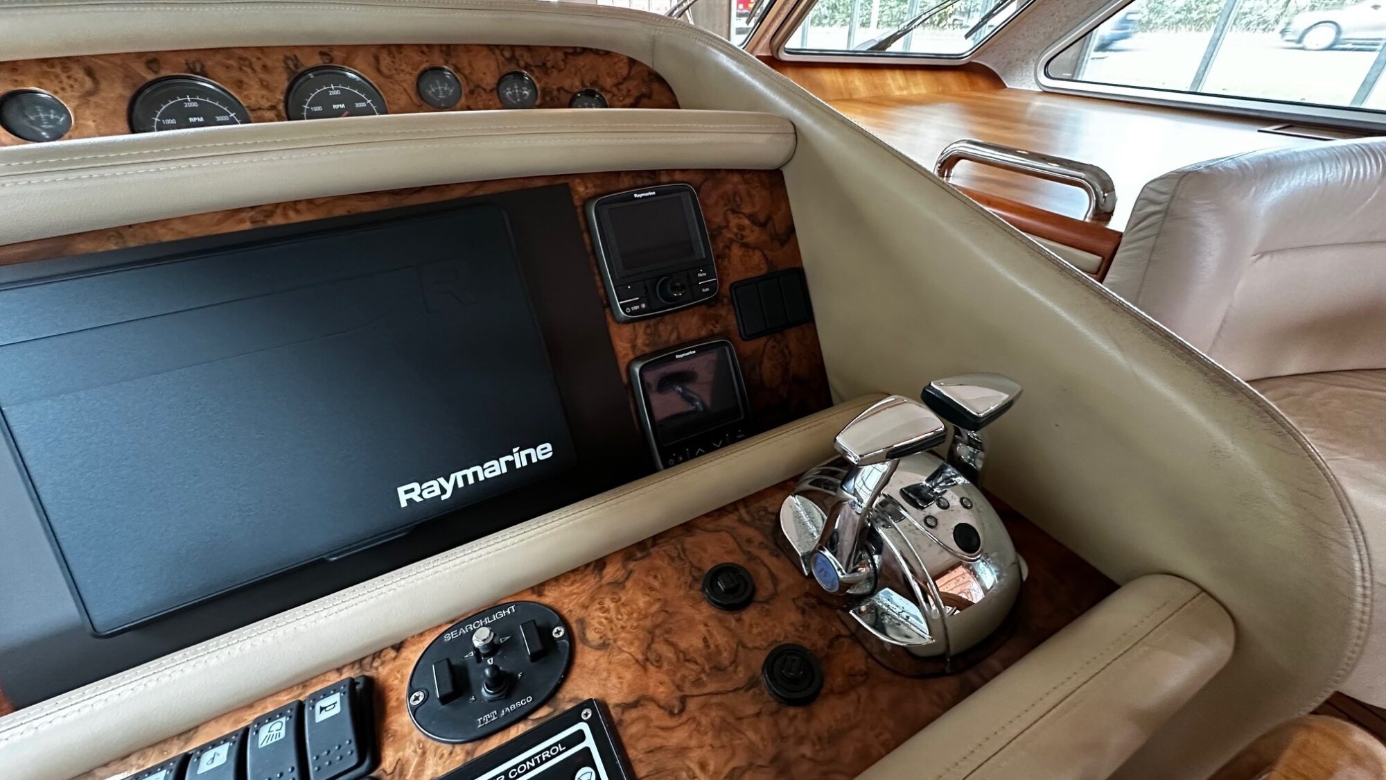 Searchlight in the mast with control at the helm