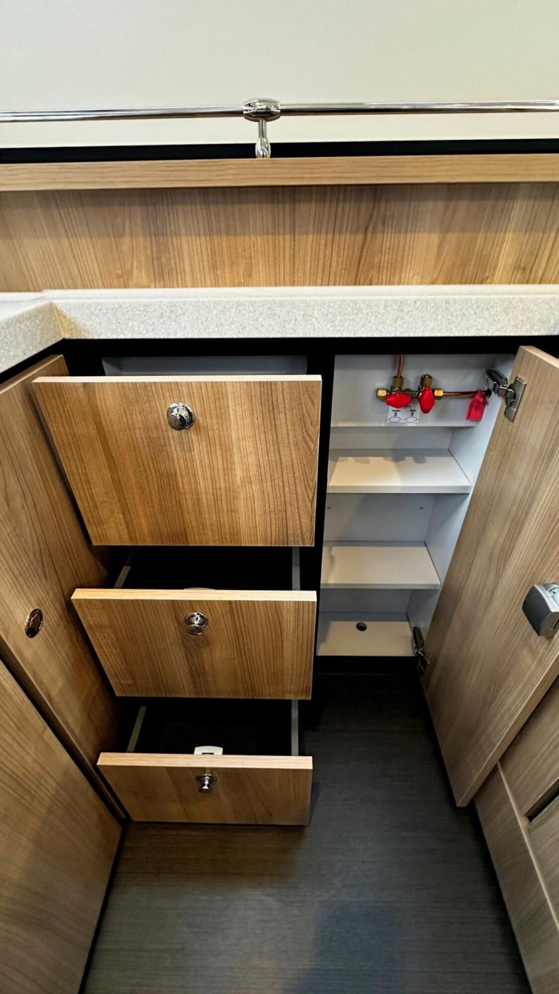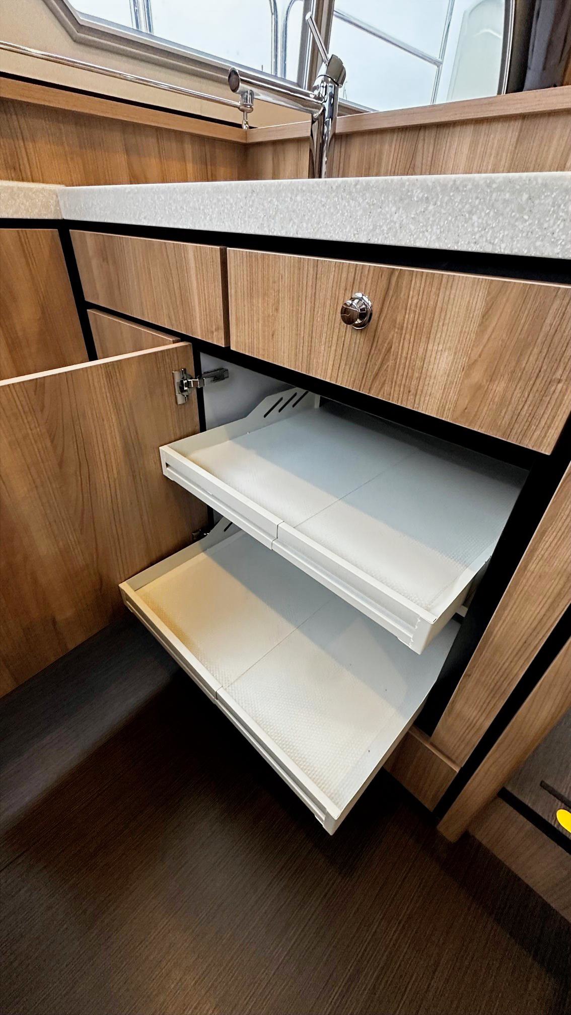 Mülleimer in Nasszelle Achterkabine, im Badschrank integriert