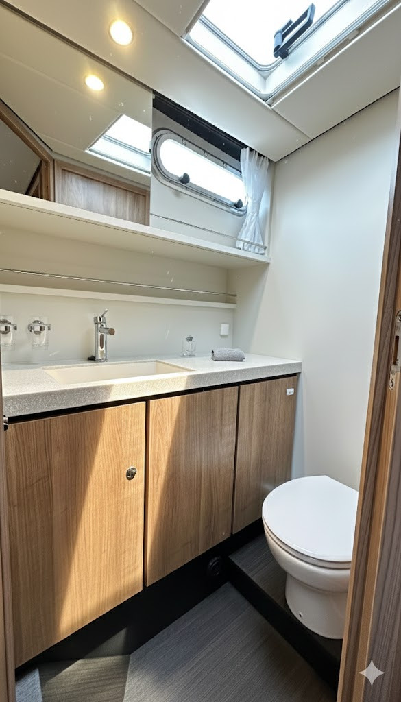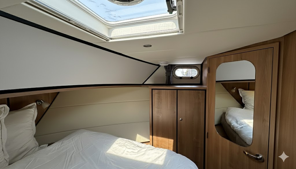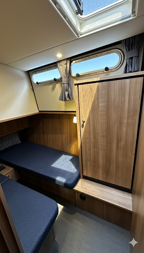 Verdunklungs-/Mückengitter in den Luken der Vorderkabine, Kajüte und Nasszelle